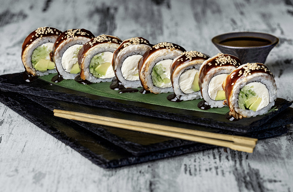 Состав: Угорь, крем-сыр, авокадо, огурец, кунжут, унаги