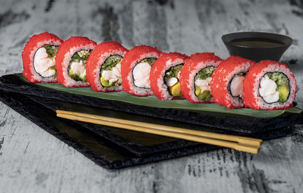 Состав: Икра тобико, Креветки, Авокадо, Огурец.