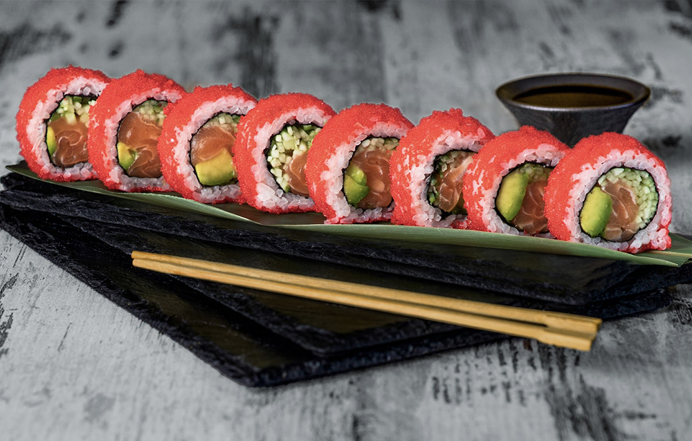Состав: Икра тобико, Лосось, Авокадо, Огурец.