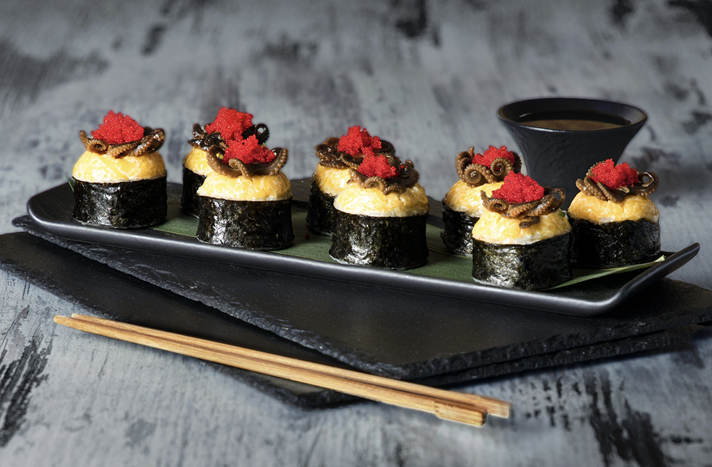 Состав: Осьминог, Лосось, Икра, Огурец, Крем-Сыр, Сырная Шапочка